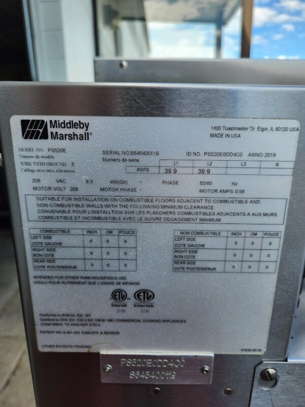 Middleby Marshall 520 Single Stack Conveyor Oven